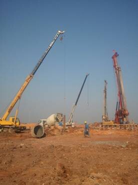 該工程巖層大部分為泥巖,巖層長時間浸水會軟化,承載力降低,為保證樁端承載力,成孔后必須加快鋼筋籠安放、導管下設施工速度,縮短巖層浸水時間。需要鋼筋籠、施工設備提前就位加速施工。