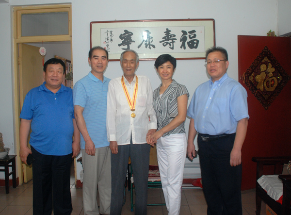 8月31日,在世界反法西斯戰(zhàn)爭勝利70周年來臨之際,省住建廳機關(guān)黨委書記王國章、離退辦處長趙月華,在總經(jīng)理李華偉、副總經(jīng)理張樹臣陪同下,看望慰問了曾參加過抗戰(zhàn)工作的離休老干部王福明同志,并帶來“中國人民抗日戰(zhàn)爭勝利70周年紀(jì)念章”和慰問金。