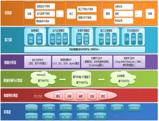 本項目在研究盾構(gòu)的運行狀態(tài)進(jìn)行監(jiān)控和管理的基礎(chǔ)上,將盾構(gòu)運行狀態(tài)參數(shù)及工況數(shù)據(jù),通過采集終端經(jīng)PLC、光纖、路由器、VPN隧道傳輸至遠(yuǎn)程數(shù)據(jù)中心,數(shù)據(jù)存儲使用工業(yè)級實時數(shù)據(jù)庫,采集頻率可達(dá)毫秒級。業(yè)務(wù)基礎(chǔ)—對各類盾構(gòu)機(jī)(機(jī)、電、液)深入分析,提供盾構(gòu)軌跡、管片軌跡、單環(huán)分析、掘進(jìn)效率等統(tǒng)計分析功能,以便管理決策層把握各項目施工情況。構(gòu)建盾構(gòu)/TBM施工與健康管理平臺,實現(xiàn)以下四個功能:1、盾構(gòu)遠(yuǎn)程監(jiān)控,2、智能維保,3、盾構(gòu)施工輔助巡航,4、組態(tài)化模塊定制。進(jìn)行盾構(gòu)施工大數(shù)據(jù)相關(guān)性、關(guān)聯(lián)分析、影響因素分析,關(guān)鍵子系統(tǒng)健康管理和故障診斷,基于大數(shù)據(jù)的比較、聚類、預(yù)測實現(xiàn)對盾構(gòu)施工進(jìn)行遠(yuǎn)程管理。