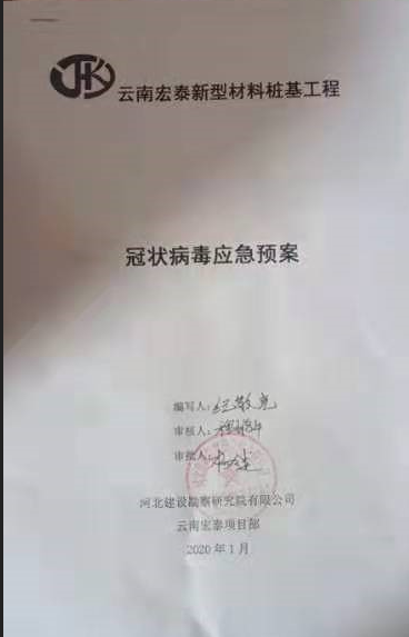 在新聞報道疫情初期,正月初二,云南宏泰樁基工程項目部便成立應急小組,為抗擊疫情做了很多預防措施,編制應急預案。