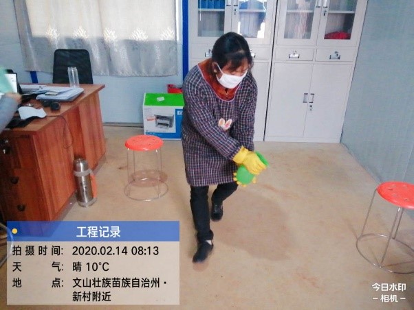 每天使用84消毒液對于大家的生活環境(宿舍、食堂、辦公室、水房、廁所等)進行消毒,尤其是水房及廁所等細菌病毒易于滋生的地方。由司機兼采購宋玉杰,負責消84毒液的采購,保證供應。