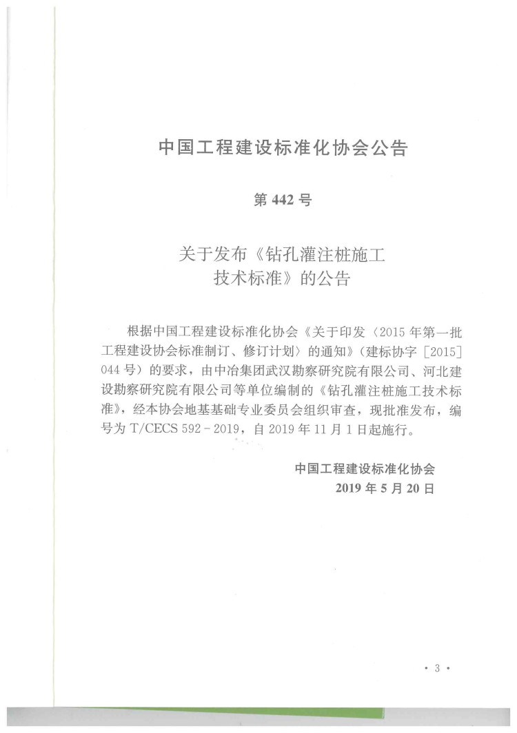 近日,我公司主編的中國工程建設(shè)標(biāo)準(zhǔn)化協(xié)會標(biāo)準(zhǔn)《鉆孔灌注樁施工技術(shù)標(biāo)準(zhǔn)》(T/CECS 592-2019)由中國建筑工業(yè)出版社正式出版發(fā)行,于2019年11月1日起實(shí)施。