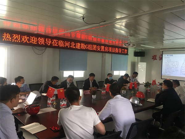 在B1組團項目部,劉中林總經理一行聽取了項目部的工作匯報,項目經理夏文超介紹了目前施工進展情況、下一步工作計劃、以及保證工期目標的措施。劉中林總經理對我項目部的工作給予了充分肯定,相信河北建勘一定能干好這個項目,并贊揚夏經理工作思路清晰、安排合理。劉中林總經理要求,安置房項目是關系民生大計的工程,一定要確保按期完成,讓搬遷的老百姓按時入住。他還強調指出,馬上進入北方的汛期,項目部一定要做好防汛工作,確保安全度汛。城市發展投資公司總經理秦文龍指出:施工中出現的各種問題一定要及時進行反饋報告,城發公司將全力解決協調,全力確保項目的順利實施。