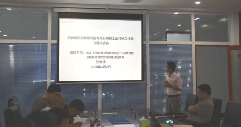 2020年6月2日下午,公司博士后工作站舉辦博士后研究人員張海清的開題報告會。由博士后工作站站長聶慶科正高級工程師、河北省建筑科學研究院副院長王維玉正高級工程師、北京交通大學白冰教授、河北科技大學張亞通教授、河北省生態環境廳謝劍鋒正高級工程師組成專家組,對張海清博士研究的《赤泥-粉煤灰地質聚合物樁(RFP)承載性能及樁身材料宏微觀特性試驗研究》開題報告進行了評審,公司總經理李華偉、省人力資源和社會保障廳、市人力資源和社會保障局有關領導參加了報告會。