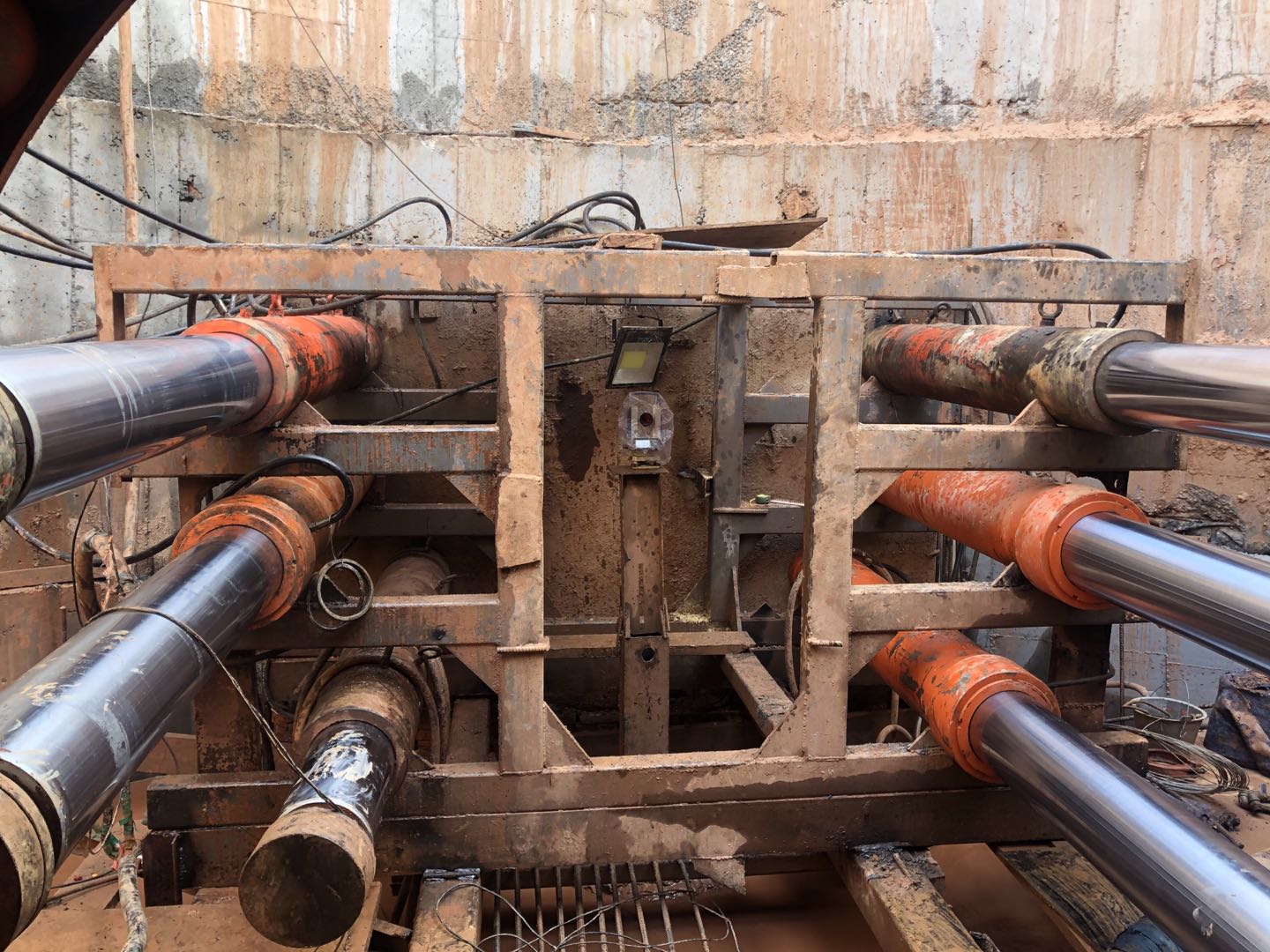 頂進(jìn)準(zhǔn)備工作完成后,開始初始頂進(jìn)。初始頂進(jìn)在頂管工作中起著很重要的作用,一要穿過工作井洞口,在這過程中保證洞口結(jié)構(gòu)不被破壞,同時泥水不進(jìn)入頂坑;二要保證高程、中心偏差最小,為正常頂進(jìn)打下良好的基礎(chǔ)。初始頂進(jìn)長度、機頭和第一節(jié)管約15m。