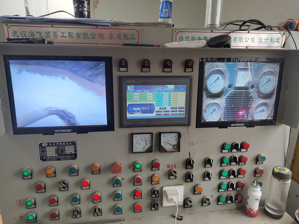 當(dāng)機頭全部進(jìn)入后封閉后,開始由機頭向管外壁注觸變泥漿,使管外壁形成泥漿套,起到減阻、潤滑作用。其中的膠質(zhì)能將套管外圍的沙土膠化粘結(jié),從而避免套管外側(cè)的沙土擾動與塌陷。