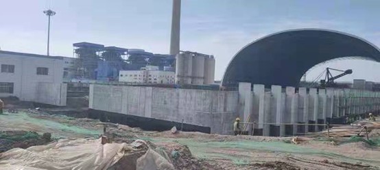 沾化一電干煤棚擴建封閉、原煤棚山墻及露天皮帶封閉、卸煤槽儲煤區封閉及附屬設施所有土建裝飾工程位于山東省濱州市。該項目由沾化匯宏新材料有限公司投資建設。我公司承擔干煤棚、原煤棚山墻、露天皮帶、卸煤槽儲煤區四個施工部位的基礎、梁柱及擋墻的施工和地面澆筑,內容包括基槽方開挖施工(約13000方)、樁頭破除(950顆)、鋼筋制作綁扎(約700噸)、混凝土澆筑(約8000方)、模板加工制作安裝(約11000平米)、防腐涂料施工(約7300平米)等內容。