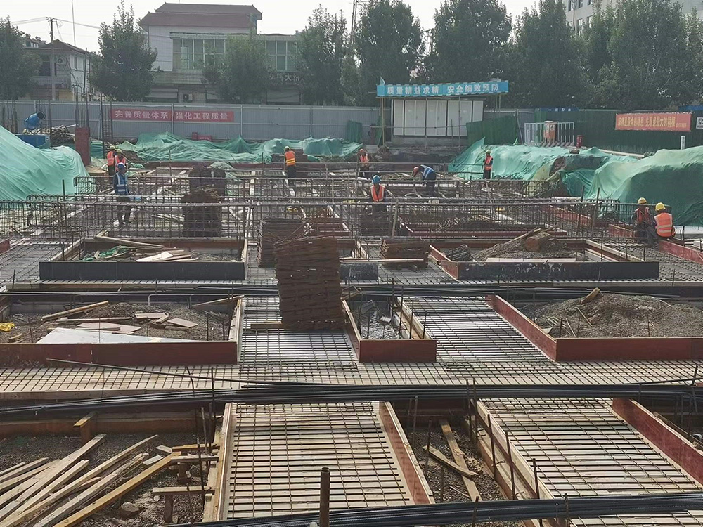 本工程特點如下:①施工場地小,施工材料堆放集中,二次搬運多;②施工過程中勞動力集中,各專業穿插作業多,其中基礎施工時需3天內組織接近200人同時施工,在新冠疫情影響下組織如此規模人員短時間進場難度較大;③技術重點多,項目部經過科學嚴密的組織和監管成功的把控了各個施工環節質量,保證工程達到驗收標準。