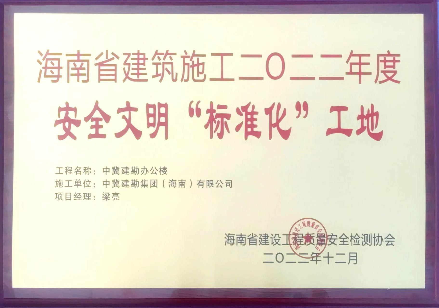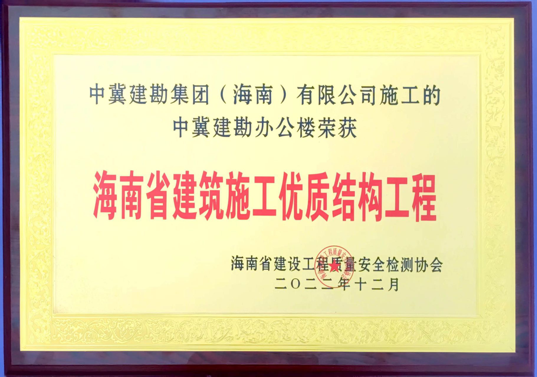 中冀建勘辦公樓榮獲“海南省建筑施工優(yōu)質(zhì)結(jié)構(gòu)工程”及海南省建筑施工二0二二年度安全文明“標(biāo)準(zhǔn)化”工地榮譽(yù)稱號