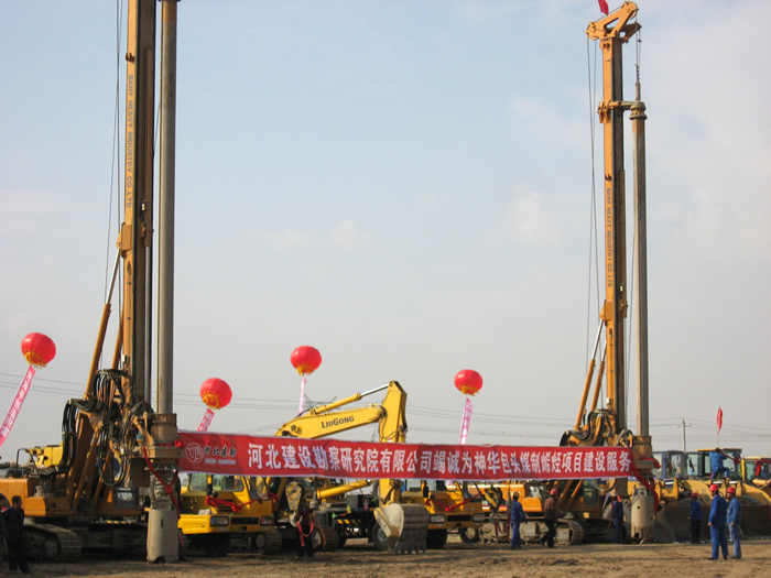 神華包頭煤制烯烴項(xiàng)目工業(yè)廠址位于包頭市九原區(qū)哈林格爾鎮(zhèn)西南,由包頭煤化工有限公司籌建,一期建設(shè)規(guī)模為180萬噸/年甲醇及相應(yīng)的公用工程、輔助生產(chǎn)設(shè)施。樁基工程自2007年9月23日開工,至2008年5月16日竣工,采用后壓漿旋挖鉆孔灌注樁,設(shè)計(jì)樁徑為Φ800mm,樁長為14.1~35.2m。共施工基樁3294根,設(shè)計(jì)混凝土方量為46989.9m3,實(shí)際灌注方量52128.1m3,樁身砼強(qiáng)度等級(jí)為C30、C35兩種。