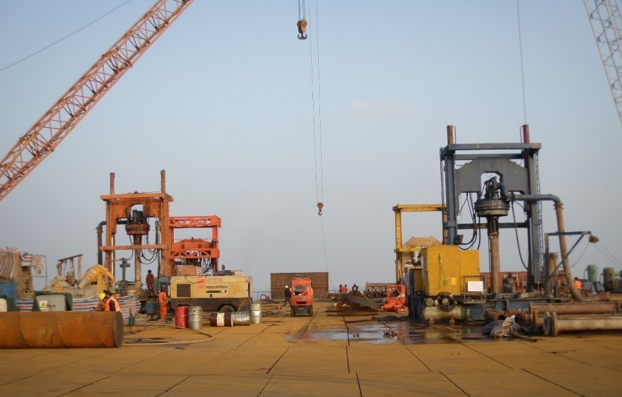本工程豎井采用鉆井法施工。鉆孔采用全液壓鉆機氣舉反循環排渣、一次性鉆進成孔;采用鋼井壁,漂浮法下沉,孔口焊接接長;壁后充填水泥漿進行止水固壁。